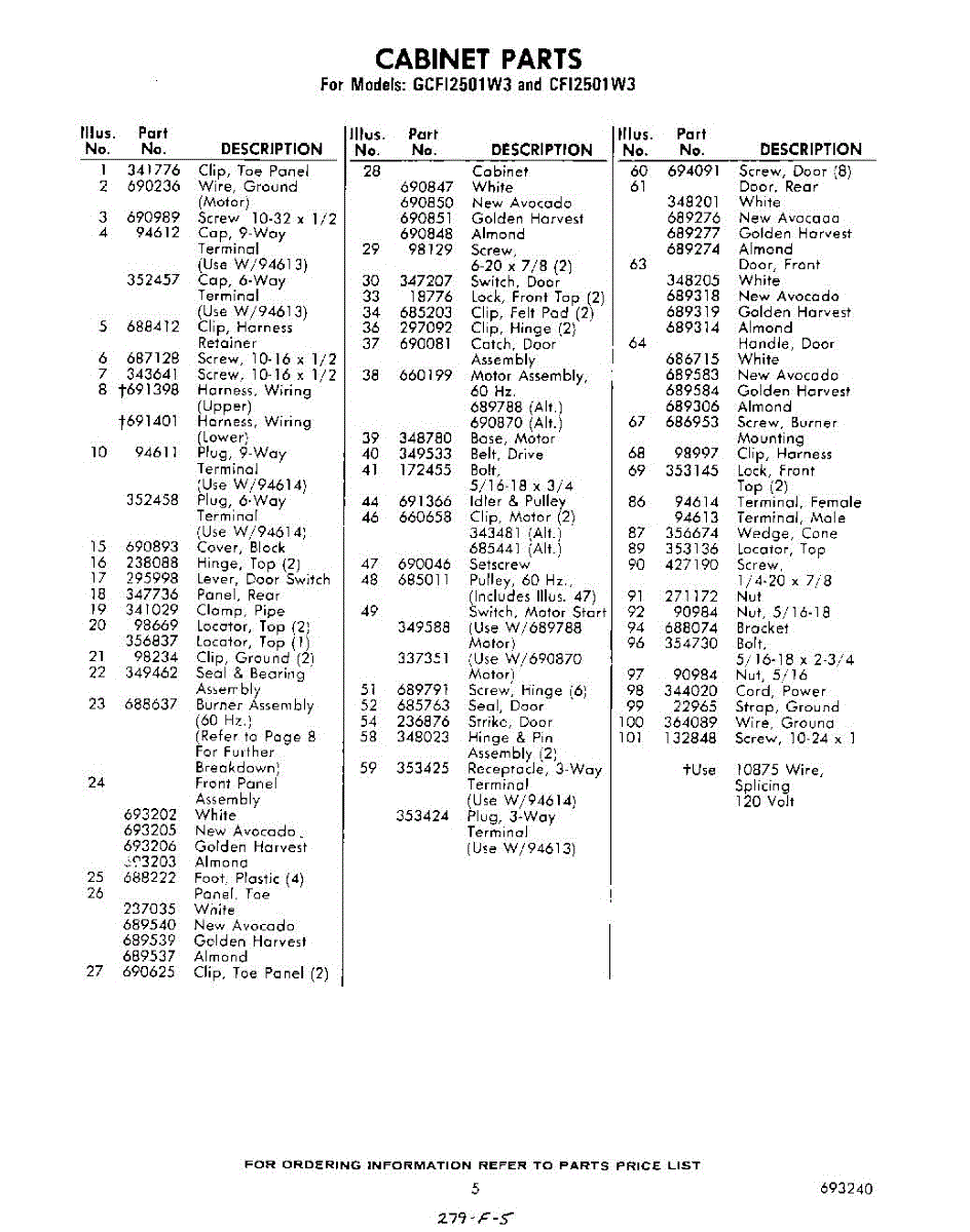 Parts for Whirlpool CFI2501W3: 05 - Section Parts