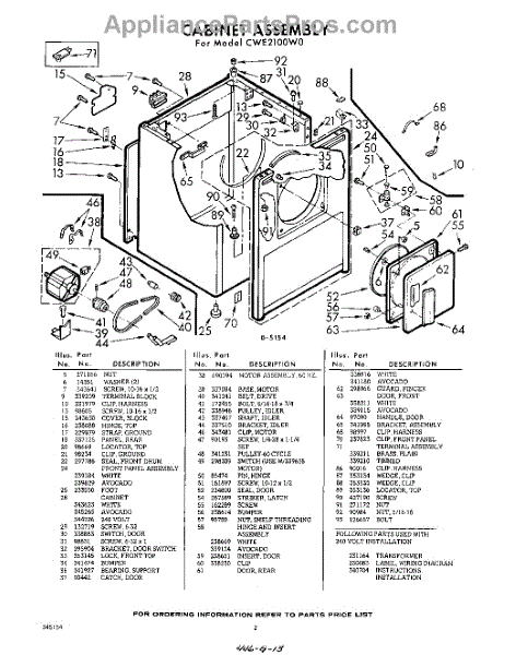 Parts for Whirlpool CWE2100W0: 02 - Section Parts
