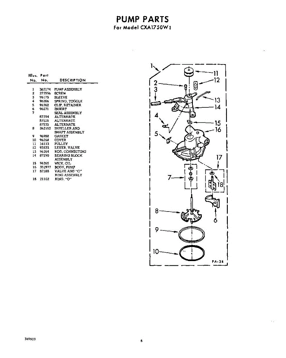 Parts for Whirlpool CXA1750W1: 08 - Section Parts