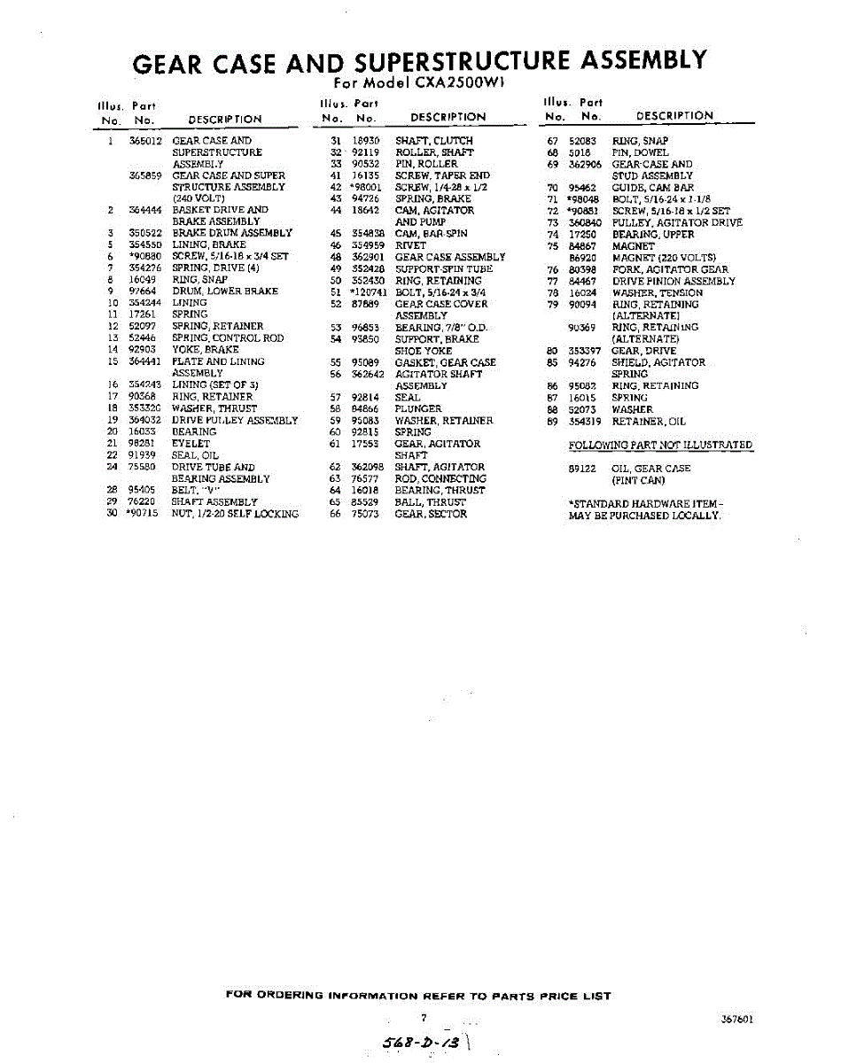 Parts for Whirlpool CXA2500W1: 07 - Section Parts