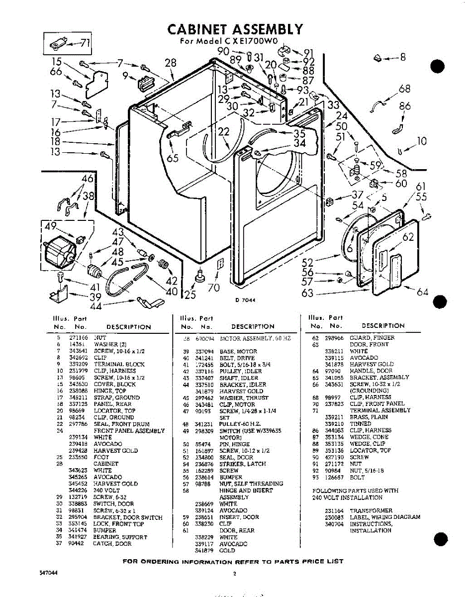 Parts for Whirlpool CXE1700W0: 02 - Section Parts