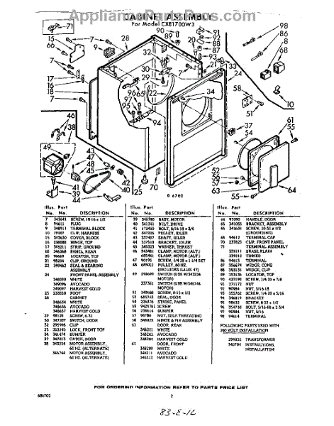 Parts for Whirlpool CXE1700W3: 02 - Section Parts