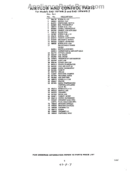 Parts for Whirlpool EAD19PMWR2: 05 - Section Parts