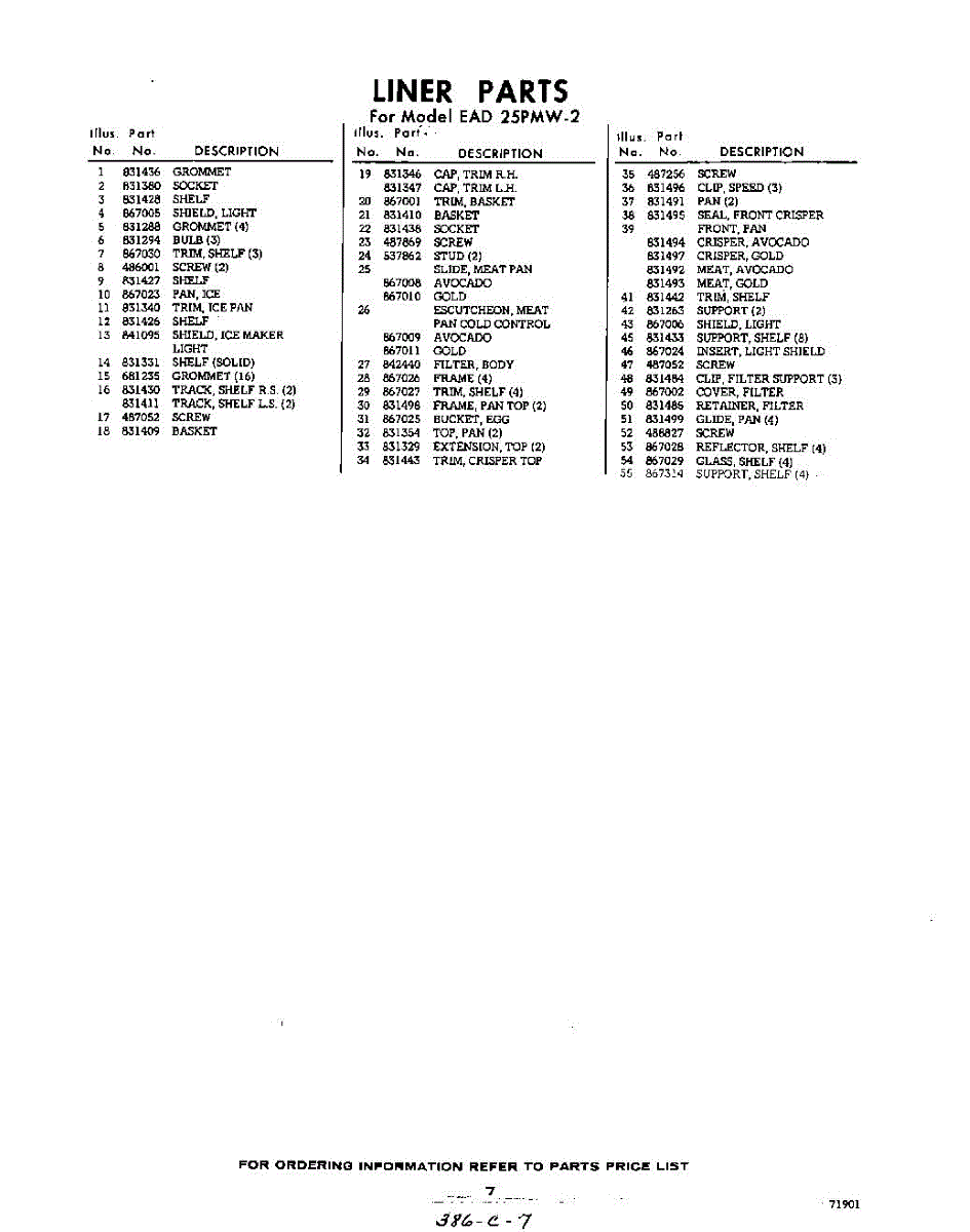 Parts for EAD25PMW2