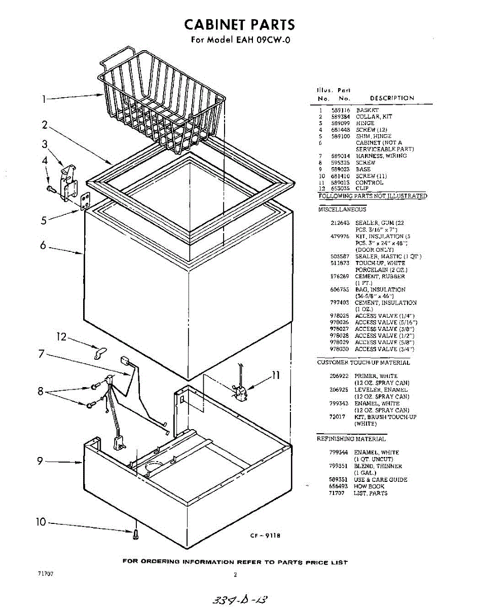 Parts for Whirlpool EAH09CW0: 02 - Section Parts