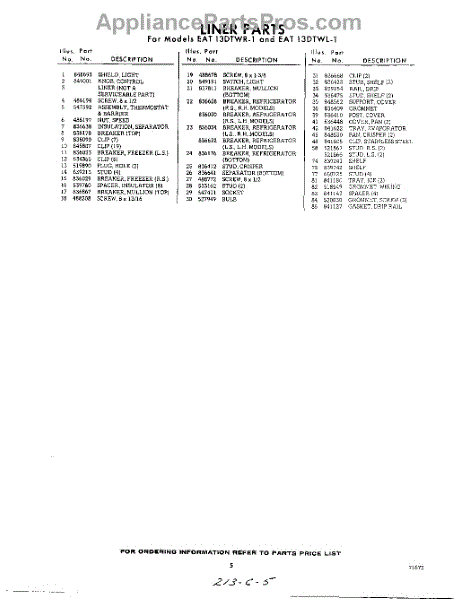 Parts for Whirlpool EAT13DTWR1: 05 - Section Parts