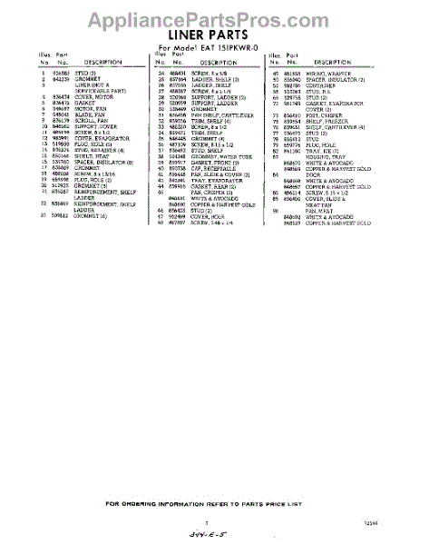 Parts for Whirlpool EAT151PKWR0: 05 - Section Parts
