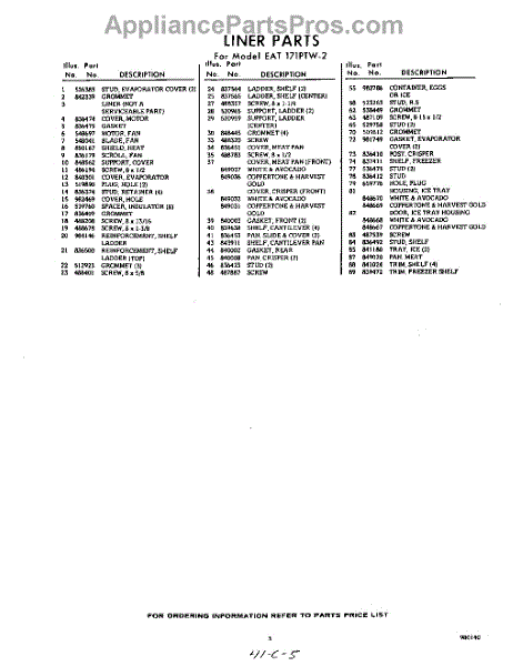 Parts for Whirlpool EAT171PTW2: 05 - Section Parts
