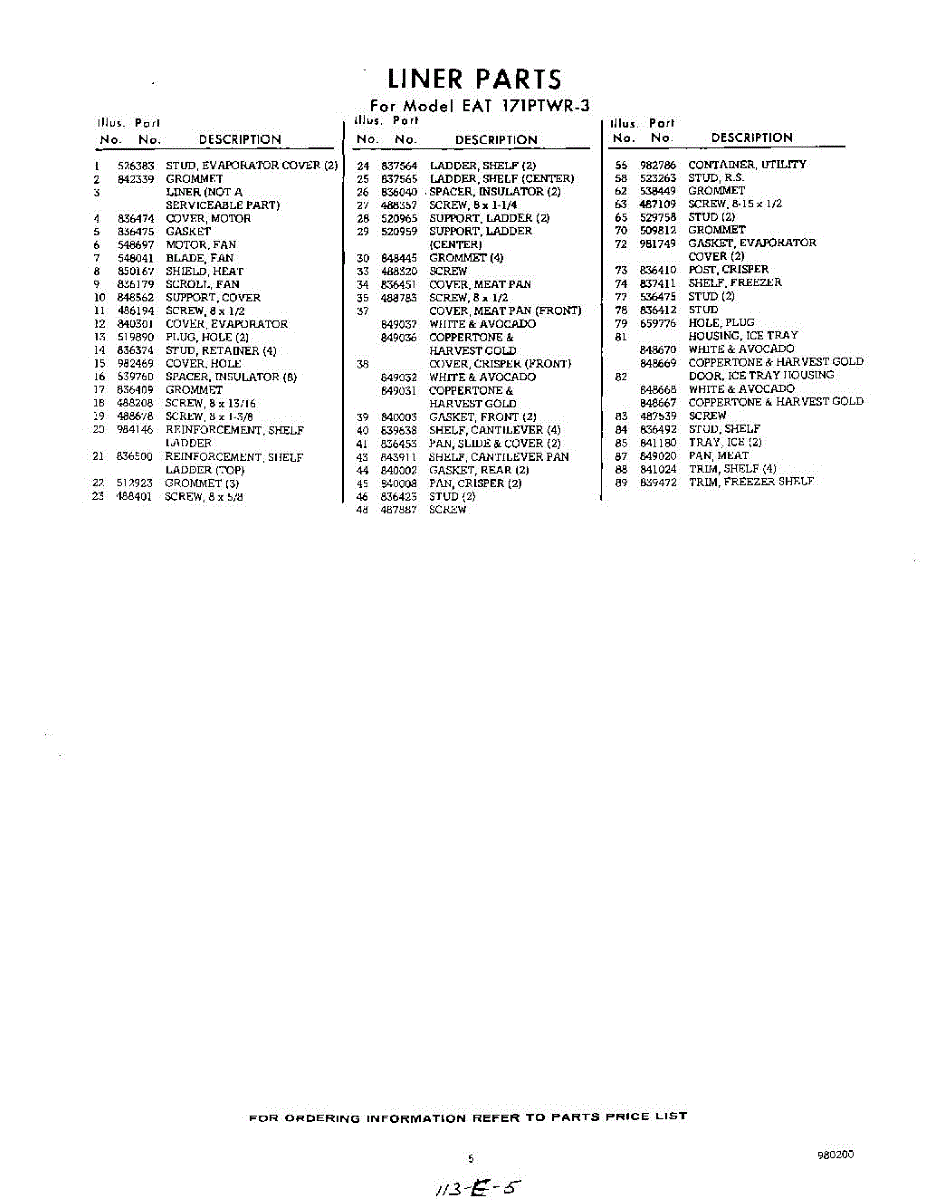 Parts for Whirlpool EAT171PTWR3: 05 - Section Parts