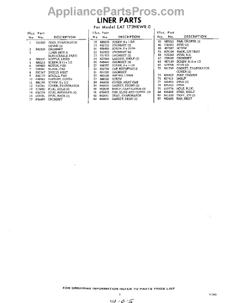 Parts for Whirlpool EAT172HKWR0: 05 - Section Parts