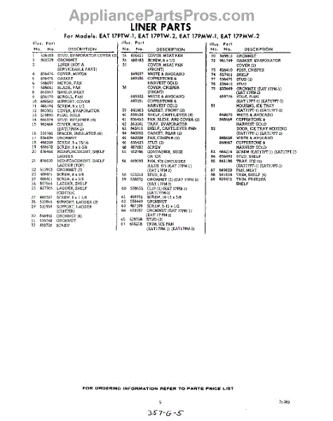 Parts for Whirlpool EAT17PMW1: 05 - Section Parts
