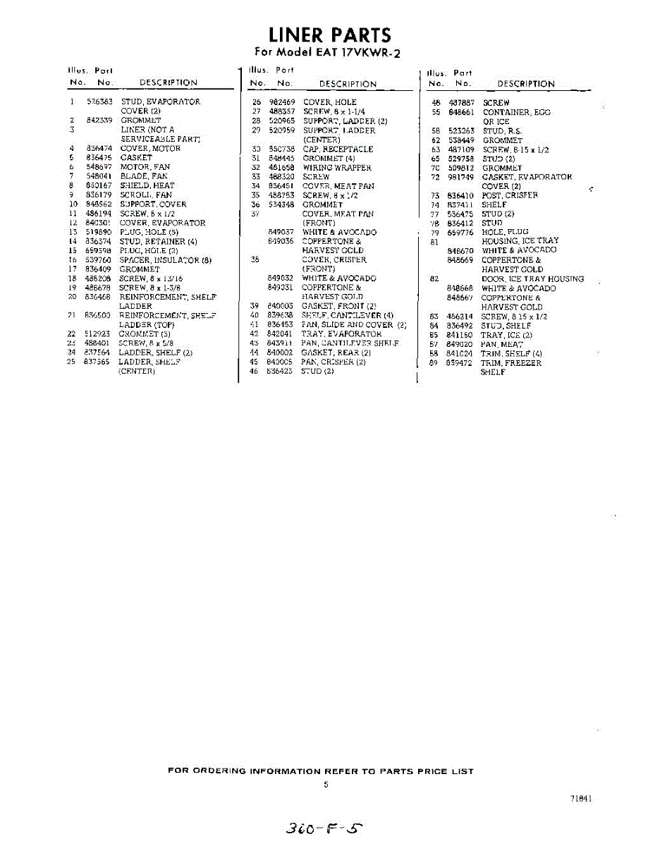 Parts for Whirlpool EAT17VKWR2: 05 - Section Parts