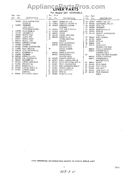 Parts for Whirlpool EAT191VKWR0: 05 - Section Parts