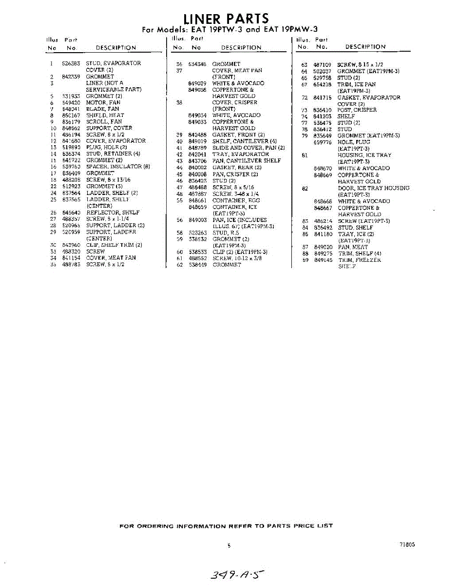 Parts for Whirlpool EAT19PTW3: 05 - Section Parts