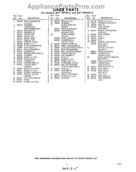 Parts for Whirlpool EAT19PTWR6: 05 - Section Parts