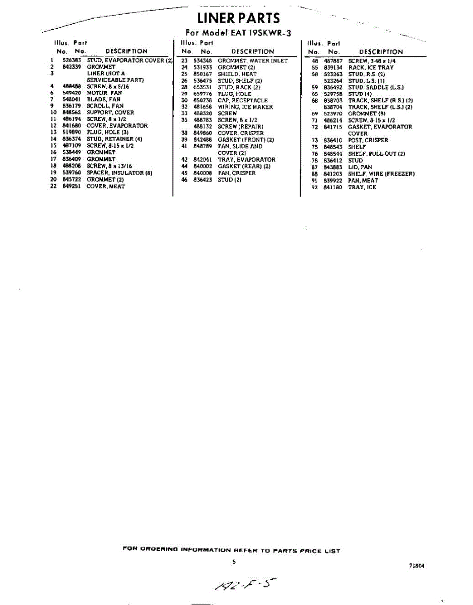 Parts for Whirlpool EAT19SKWR3: 05 - Section Parts