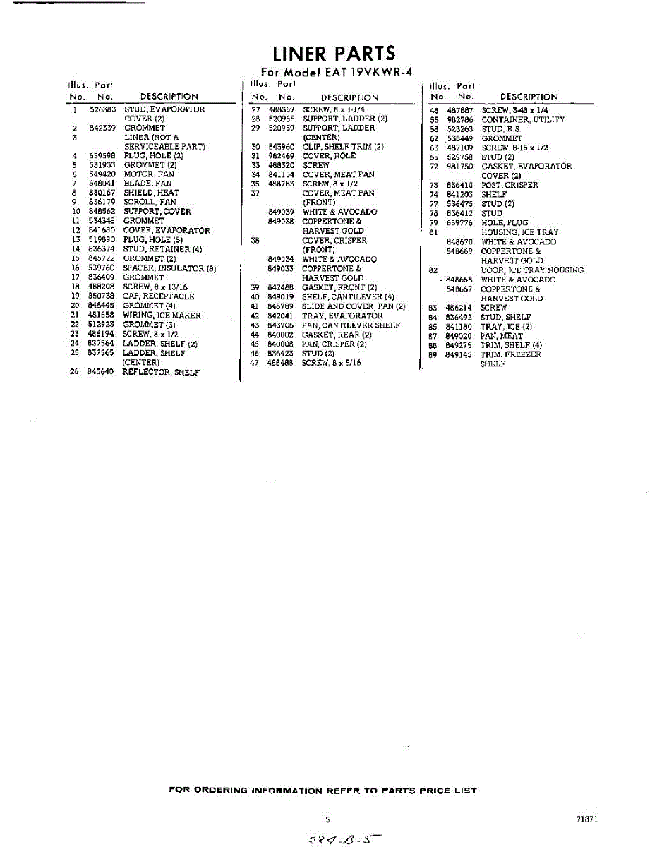 Parts for Whirlpool EAT19VKWR4: 05 - Section Parts