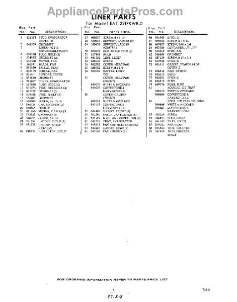 Parts for Whirlpool EAT221PKWR0: 05 - Section Parts
