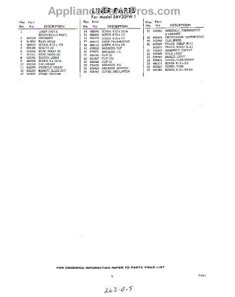 Parts for Whirlpool EAV20FW1: 05 - Section Parts