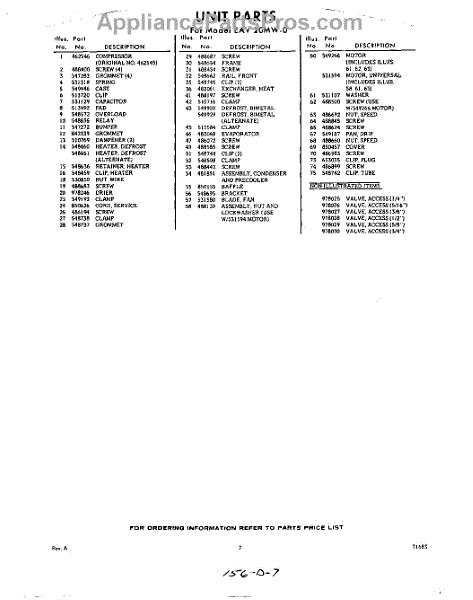 Parts for EAV20MW0