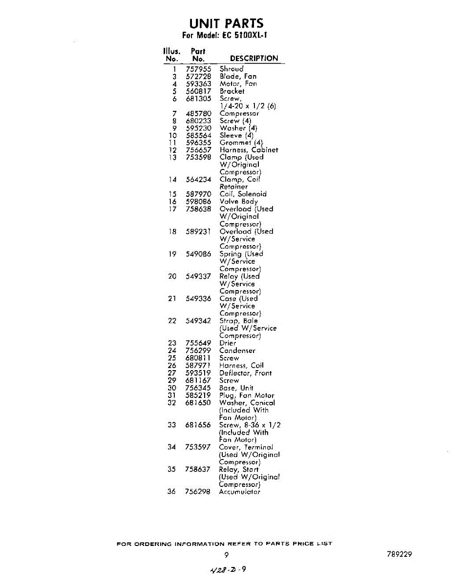 Parts for Whirlpool EC5100XL1: 09 - Section Parts