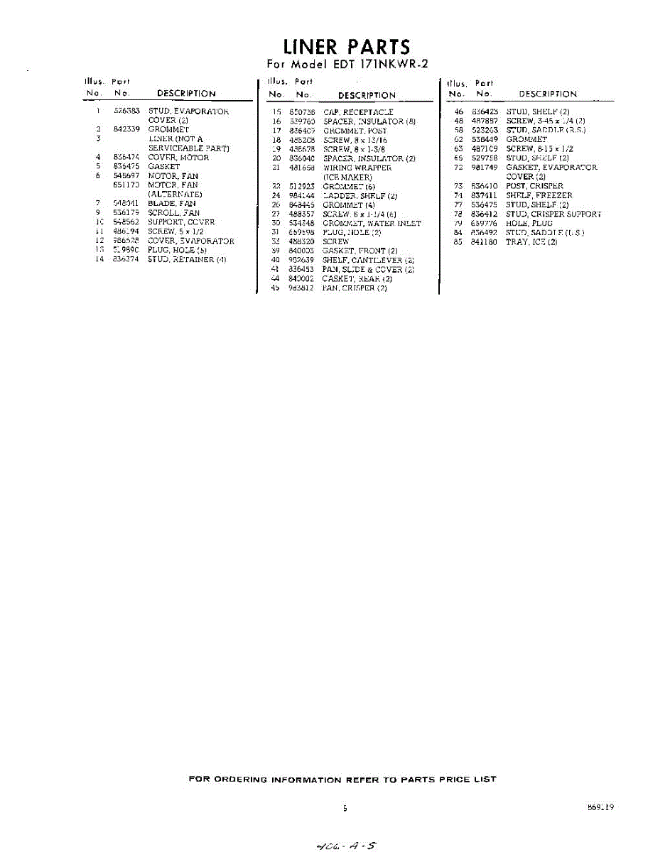 Parts for EDT171NKWR2