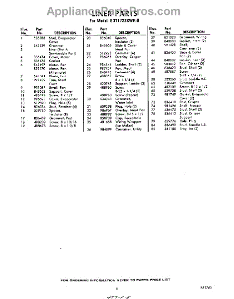 Parts for EDT172ZKWR0
