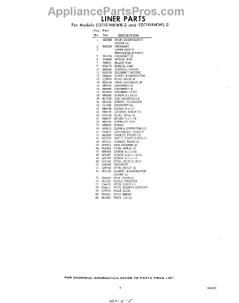 Parts for EDT191NKWR0