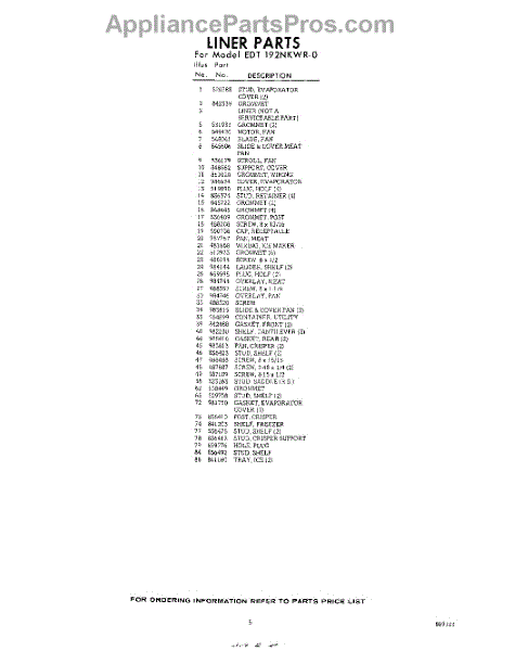 Parts for Whirlpool EDT192NKWR0: 05 - Section Parts