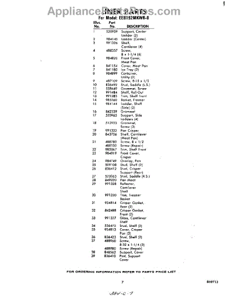 Parts for Whirlpool EEB192MKWR0: 07 - Section Parts