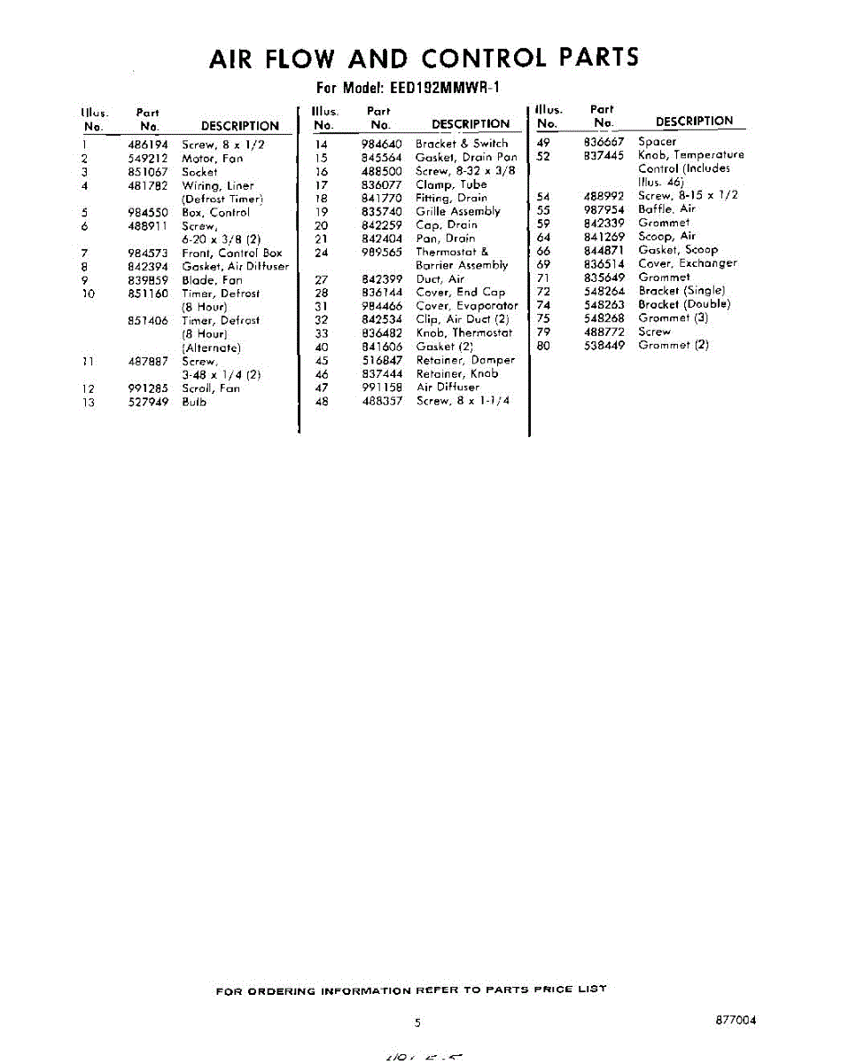 Parts for Whirlpool EED192MMWR1: 05 - Section Parts
