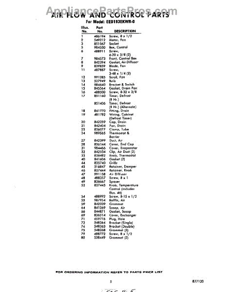 Parts for Whirlpool EED193EKWR0: 05 - Section Parts