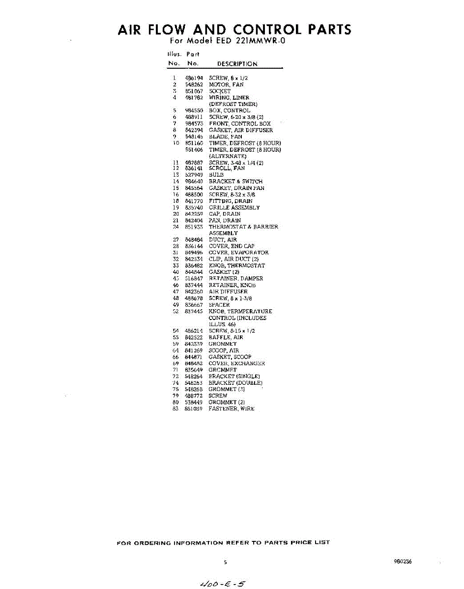 Parts for Whirlpool EED221MMWR0: 05 - Section Parts