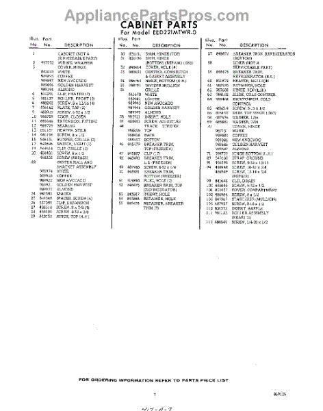 Parts for Whirlpool EED221MTWR0: 07 - Section Parts