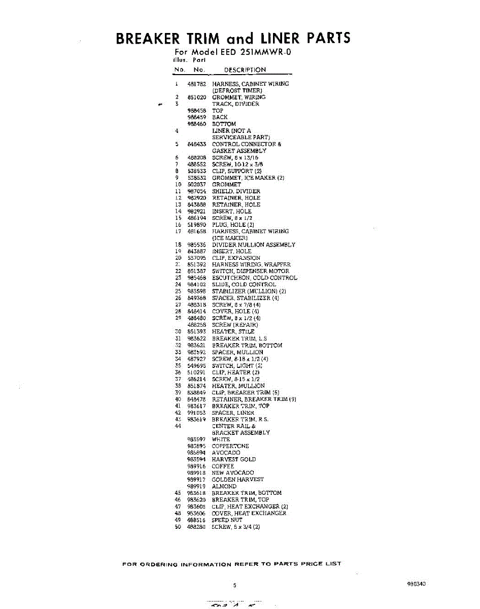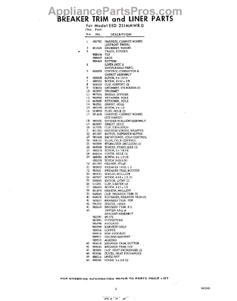 Parts for Whirlpool EED251MMWR0: 05 - Section Parts
