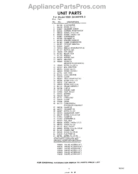 Parts for Whirlpool EED261MKWR0: 11 - Section Parts