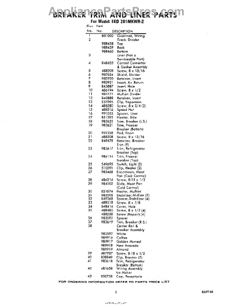 Parts for Whirlpool EED261MKWR2: 05 - Section Parts