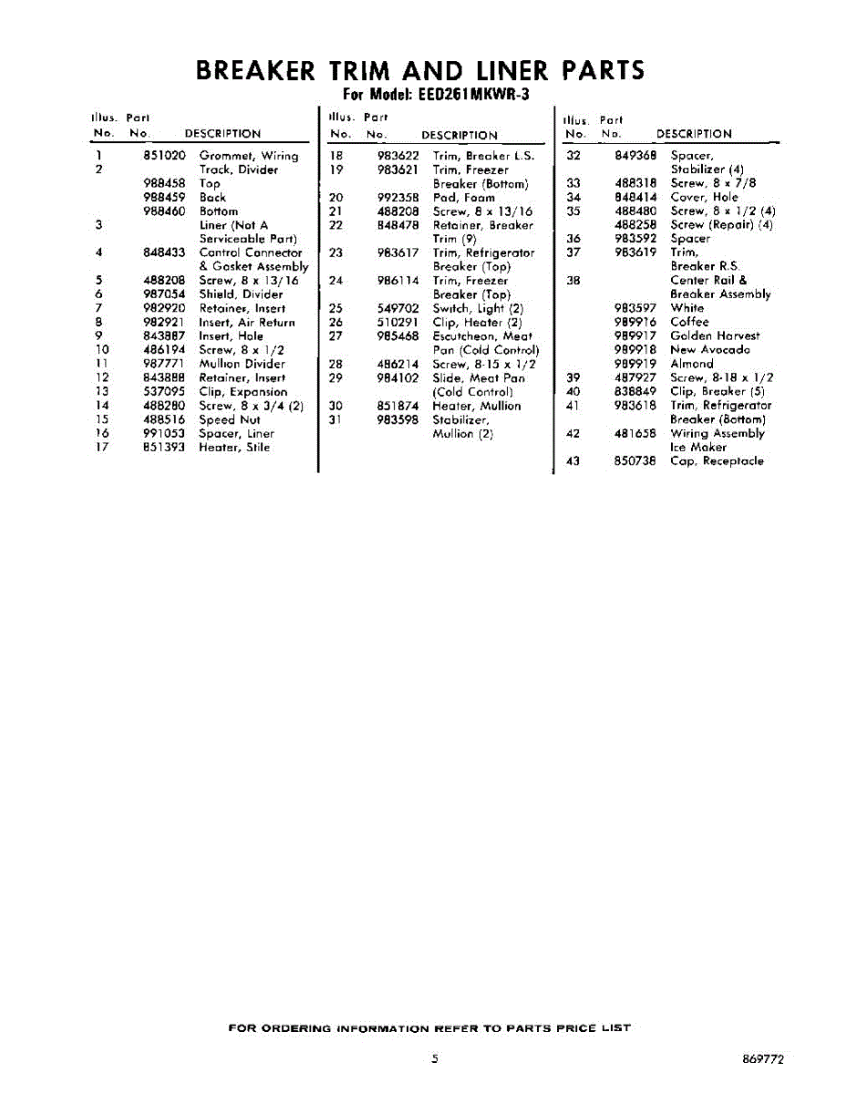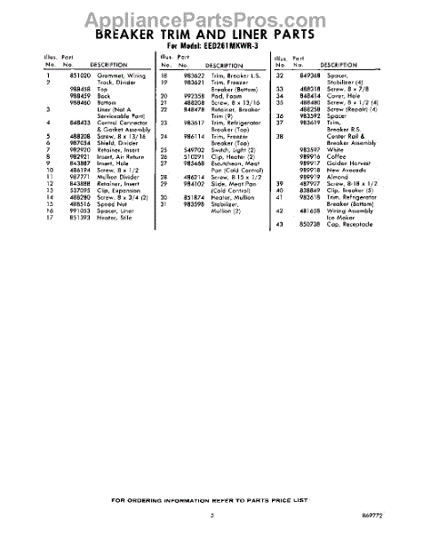 Parts for Whirlpool EED261MKWR3: 05 - Section Parts