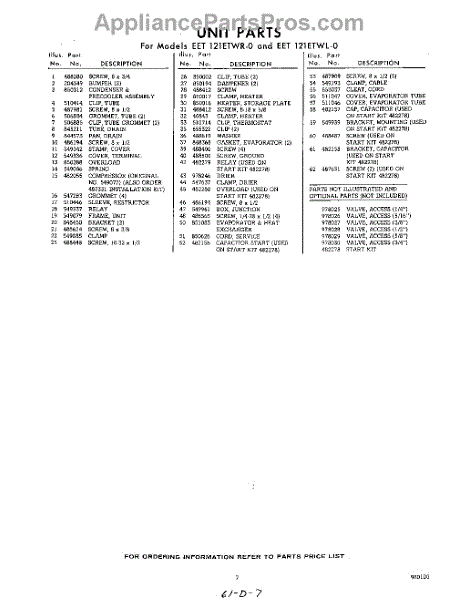 Parts for EET121ETWR0