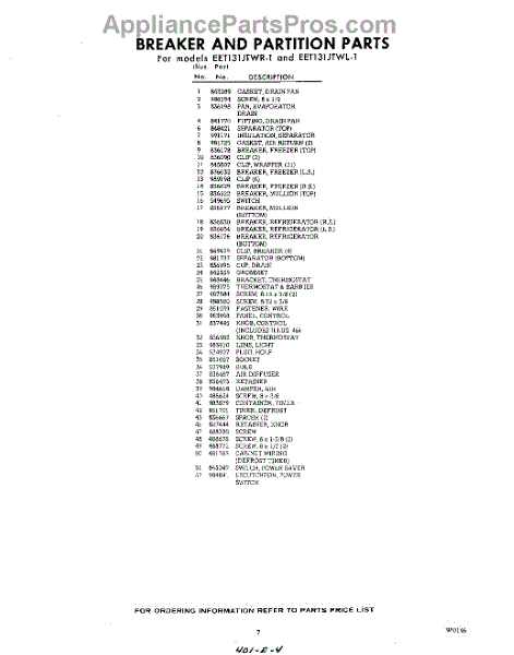 Parts for EET131JTWR1
