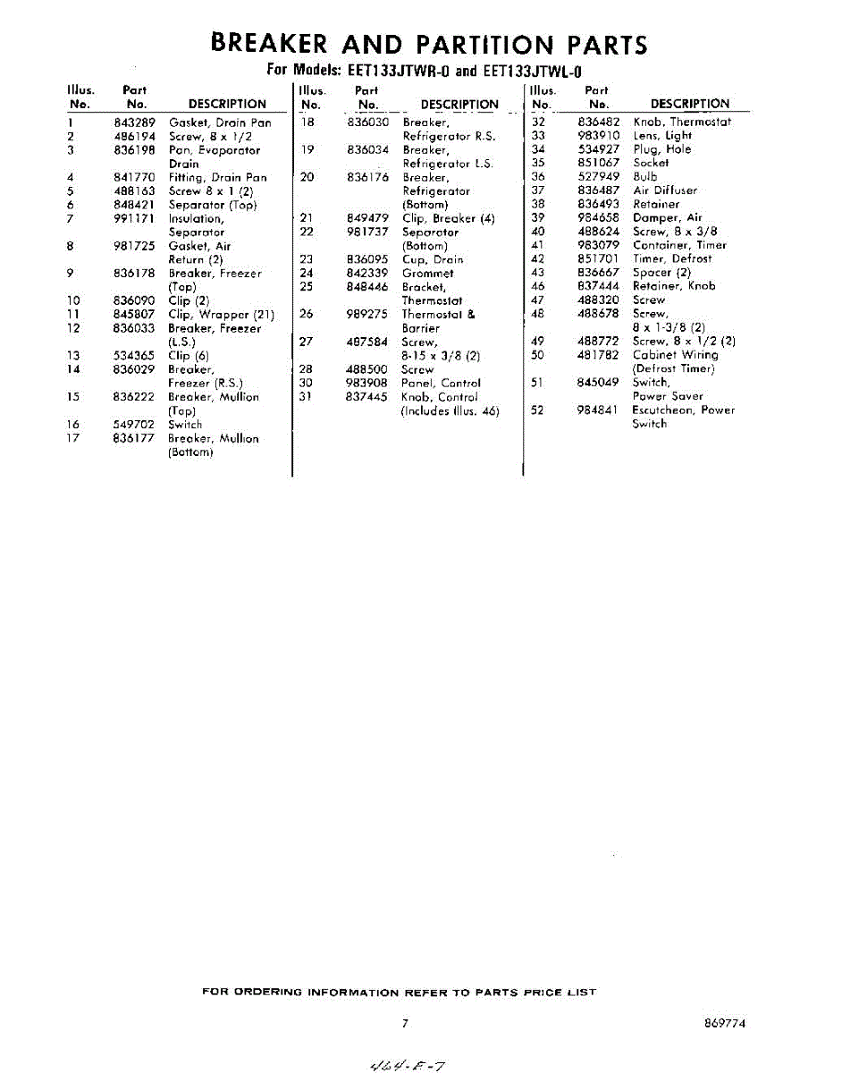 Parts for Whirlpool EET133JTWR0: 07 - Section Parts