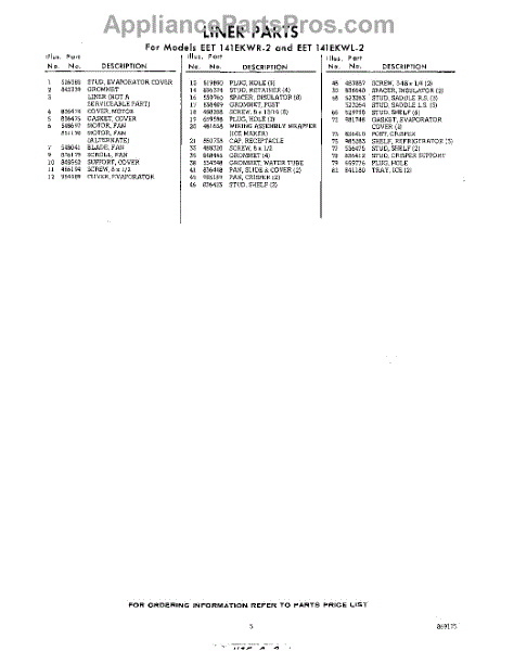 Parts for Whirlpool EET141EKWR2: 05 - Section Parts