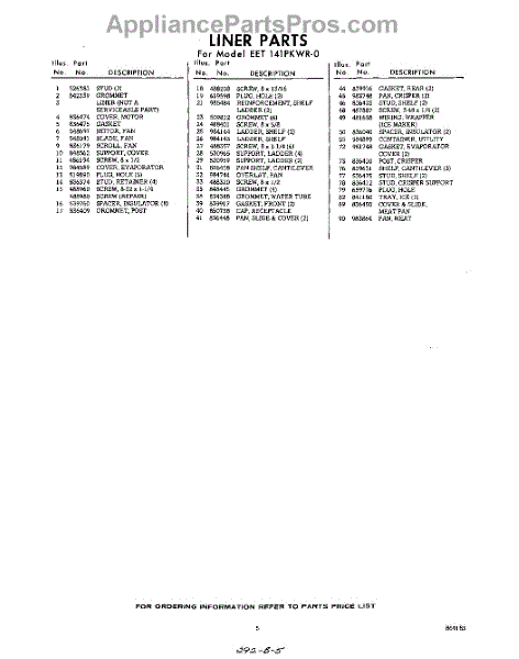 Parts for Whirlpool EET141PKWR0: 05 - Section Parts