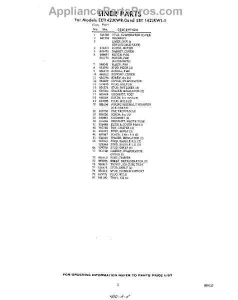Parts for Whirlpool EET142JKWR0: 05 - Section Parts