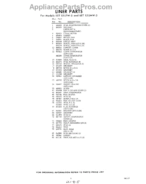 Parts for Whirlpool EET151JTWR0: 05 - Section Parts