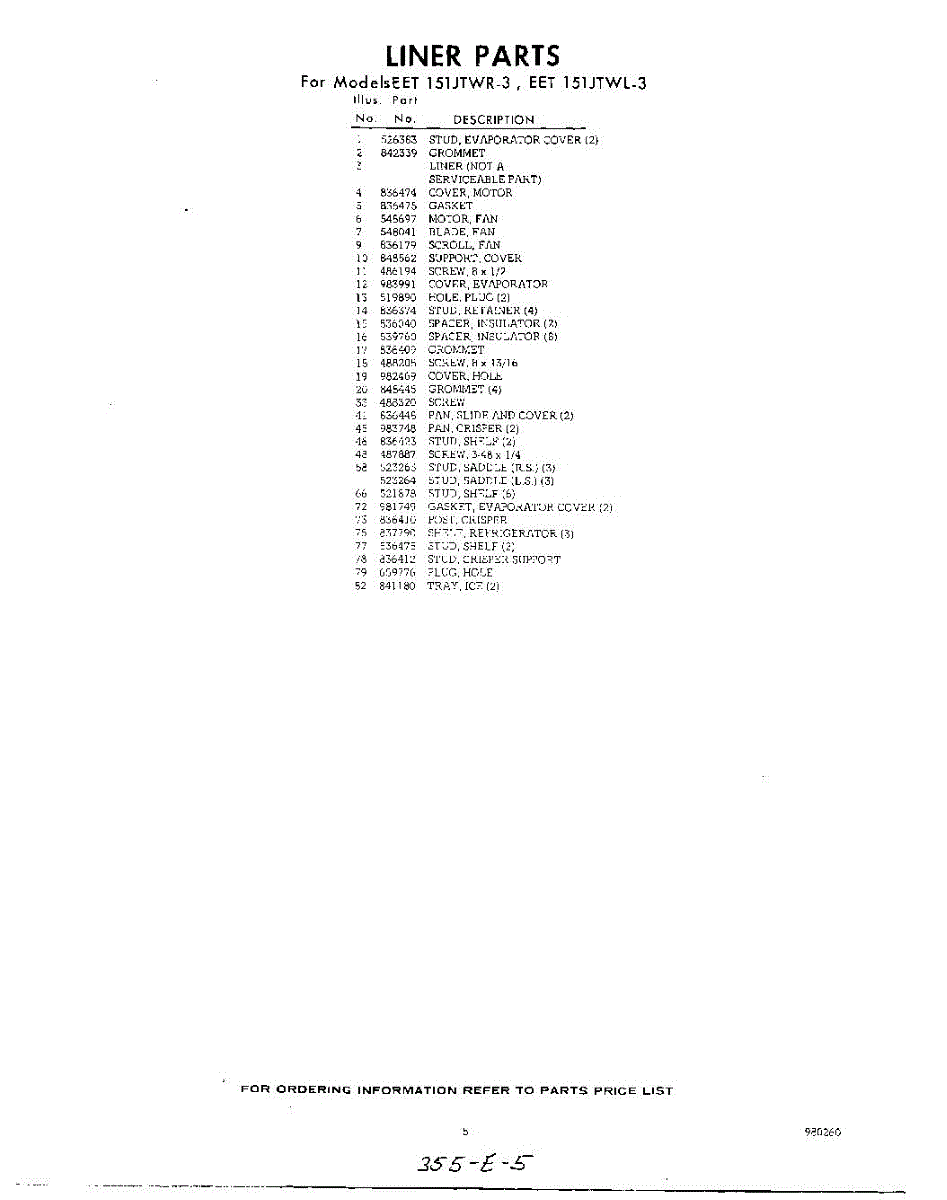 Parts for Whirlpool EET151JTWR3: 05 - Section Parts