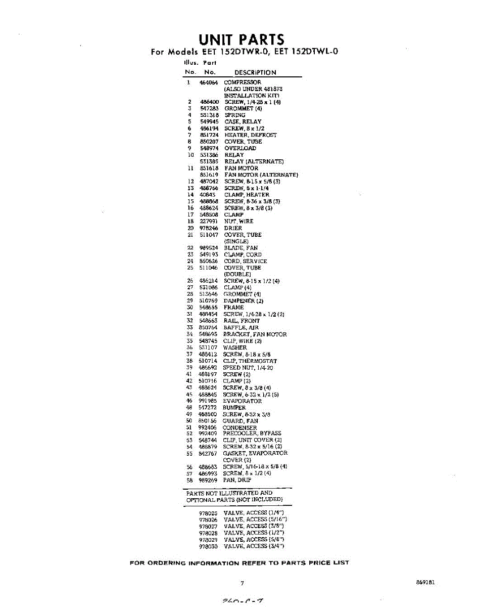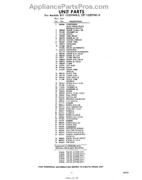 Parts for EET152DTWR0