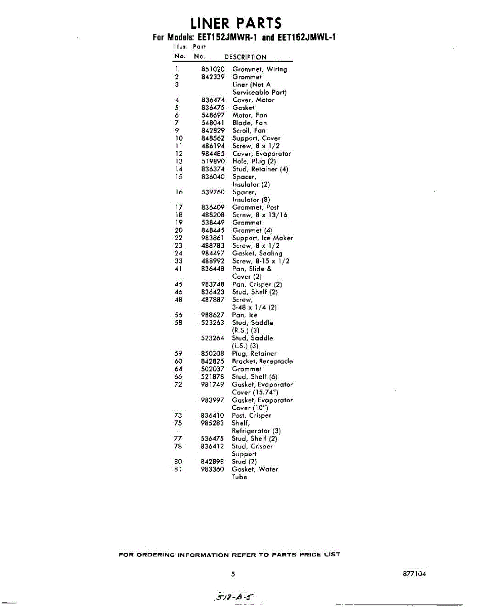 Parts for Whirlpool EET152JMWR1: 05 - Section Parts