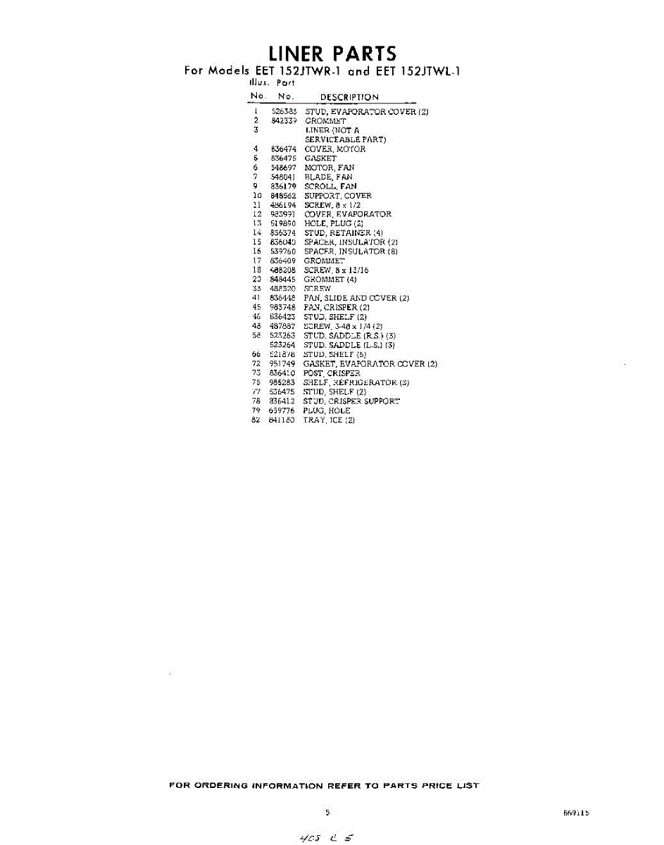 Parts for Whirlpool EET152JTWR1: 05 - Section Parts