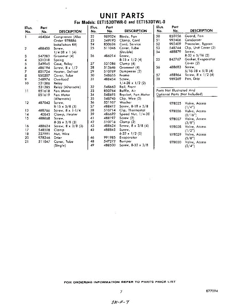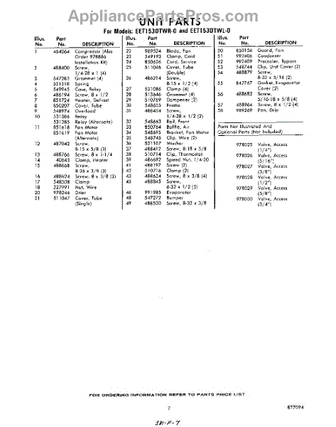 Parts for EET153DTWR0